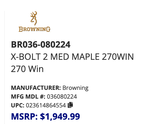 BROWNING X-BOLT 2 HUNTER MAPLE DELUXE - .270 WIN