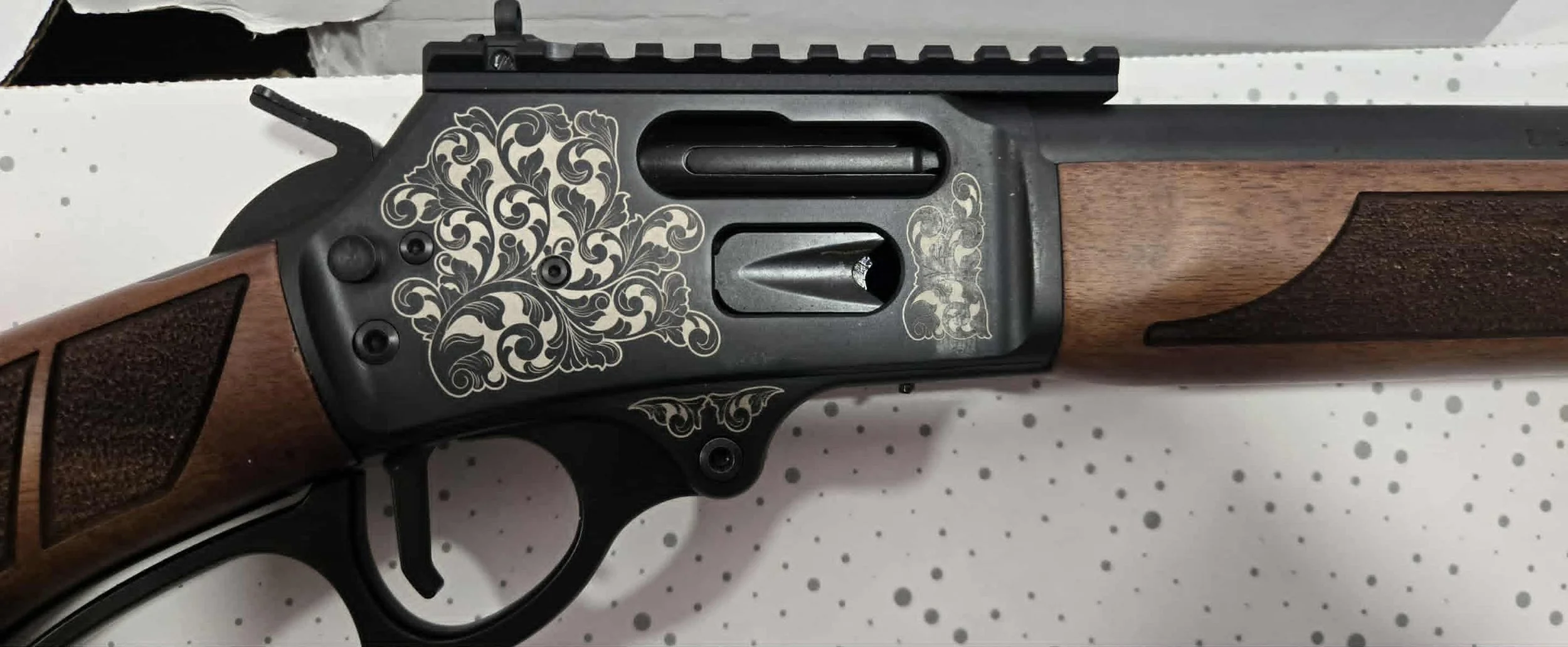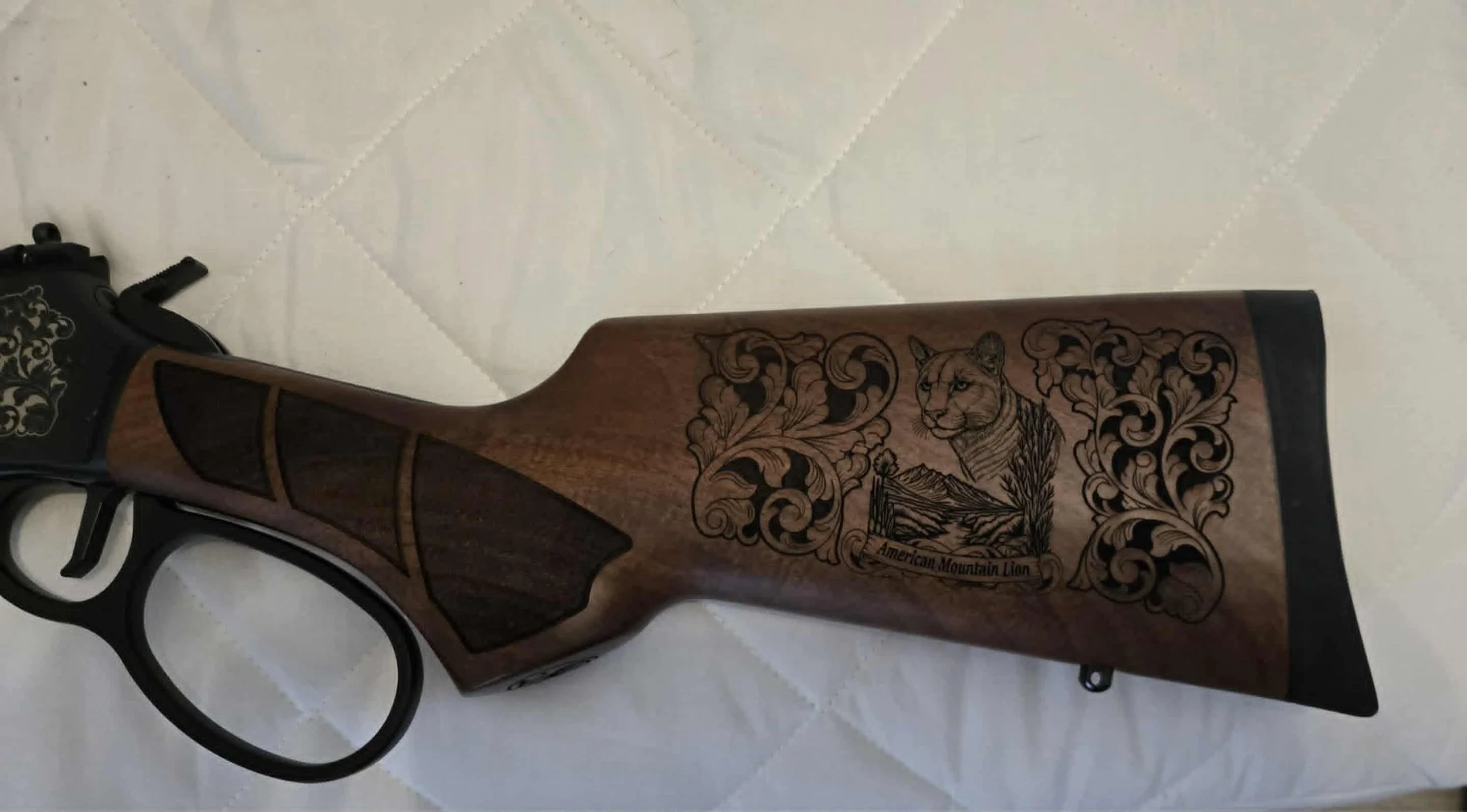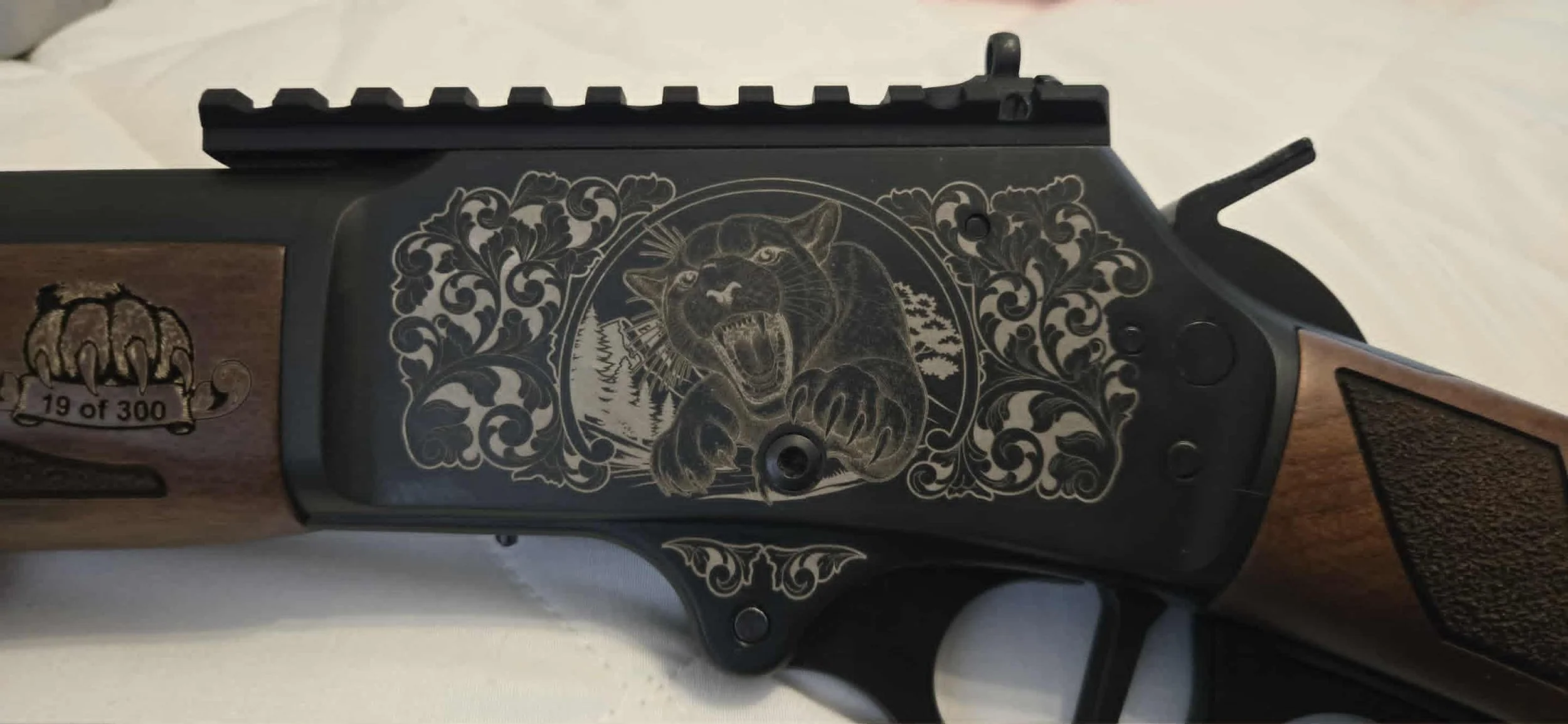 19.25" / 10+1 / WALNUT STOCK / PICATINNY RAIL / LARGE LOOP / CUSTOM WOOD AND RECEIVER ENGRAVING !