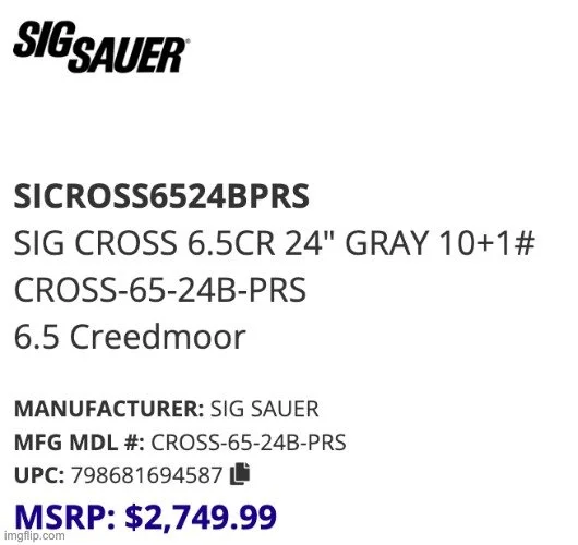 SIG SAUER CROSS PRS - 6.5 CREEDMOOR