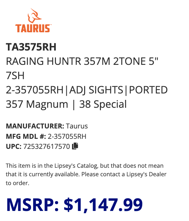 TAURUS RAGING HUNTER REVOLVER - .357 MAGNUM / .38 SPECIAL