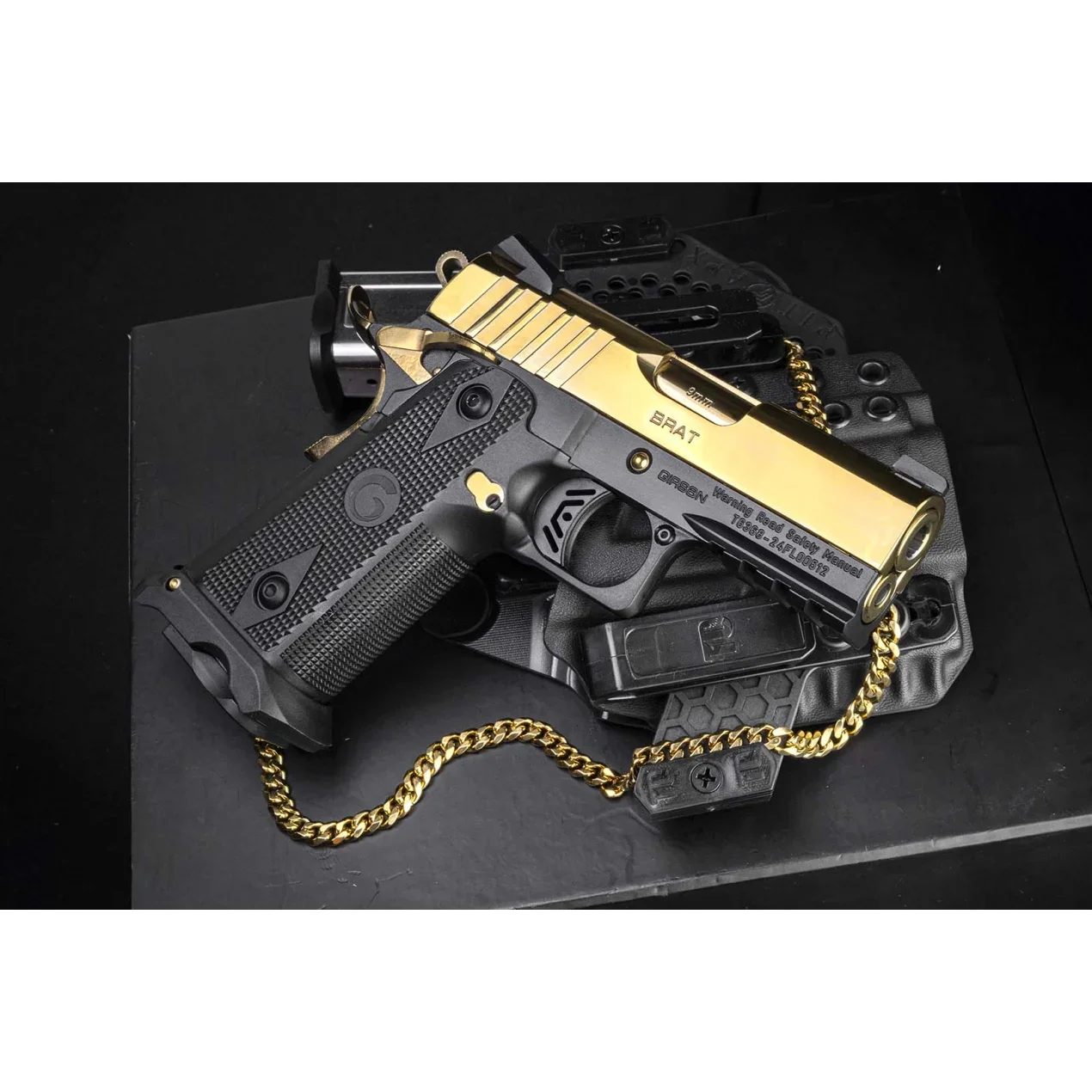3.4” / 17+1 / GOLD TITANIUM SLIDE / SKELETONIZED TRIGGER / BULL BARREL / OFFICER SIZE / DOUBLE STACK / ACCESSORY RAIL / FLARED MAGWELL / TRIGGER PULL 4 LBS