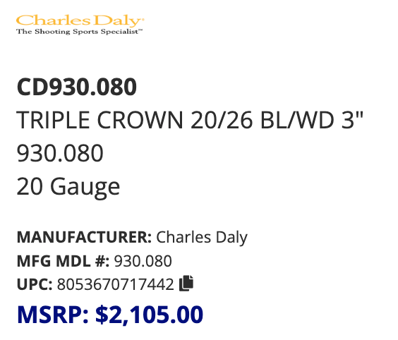 26” / 3-RD / 5 CHOKES (Skeet, IC, MOD, IM, F) / Single TRIGGER / Checkered Walnut / Fixed Fiber Optic Premium Case Included
