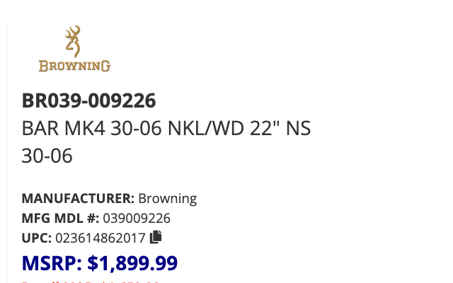 BROWNING BAR MK4 MEDALLION - .30-06