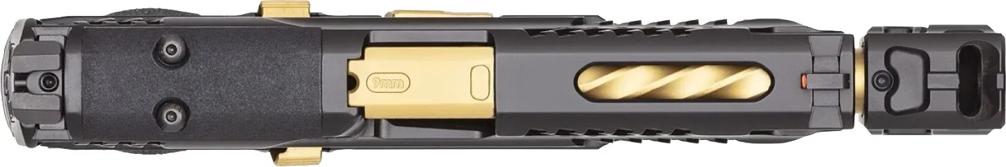 4.87” THREADED / 4 MAGS (17+1 / 23+1 / TUNGSTEN GRAY CERAKOTE / NIGHT SIGHTS / GOLD CONTROLS / OPTIC READY / COMPENSATOR / FLUTED