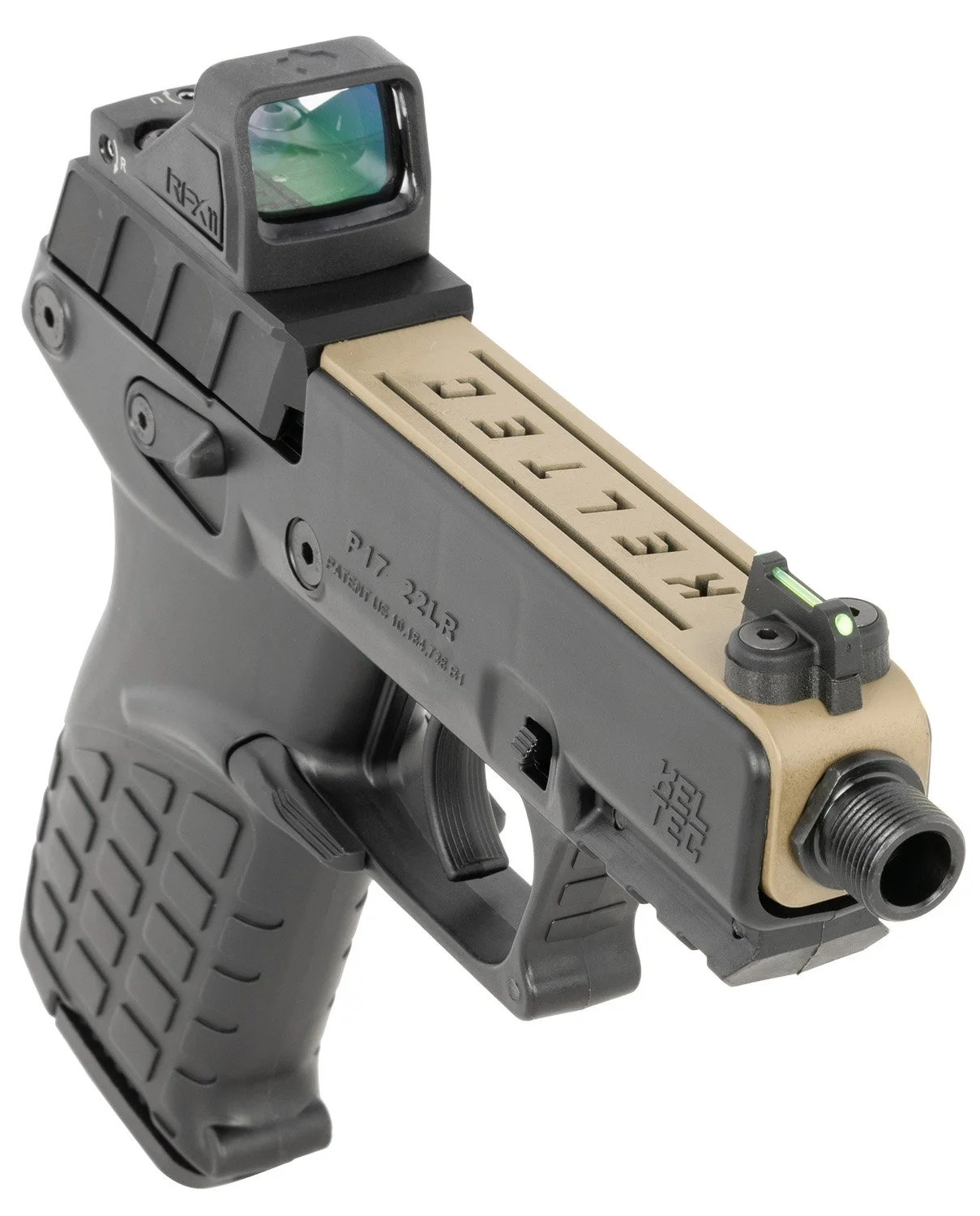 3.8” THREADED / 16+1 / FDE TOP SLIDE / BLACK FRAME / VIRIDIAN RFX-11 GREEN DOT / FRONT FIBER OPTIC SIGHT